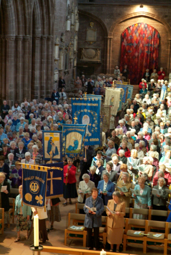 The Rt. Revd. Robert Atwell, Bishop of Stockport, celebrated and preached at the Festival service. He spoke to us about families and reminded us that there have been problems in families from the time of Genesis. After quoting from our aim and objectives, he urged us to be out there fighting for families. During the service Angela Klabou, Peggy Whetham and Wendy Sykes were commissioned as Speakers and the Ven Richard Gillings was enrolled as a member of Mothers' Union