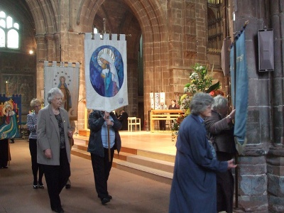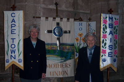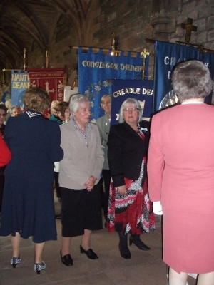 | L to R: The Dean, Angela Klabou, Diocesan President; Wendy Sykes, Macclesfield Archdeaconry President; Vivien Ley, Chester Archdeaconry President. | |